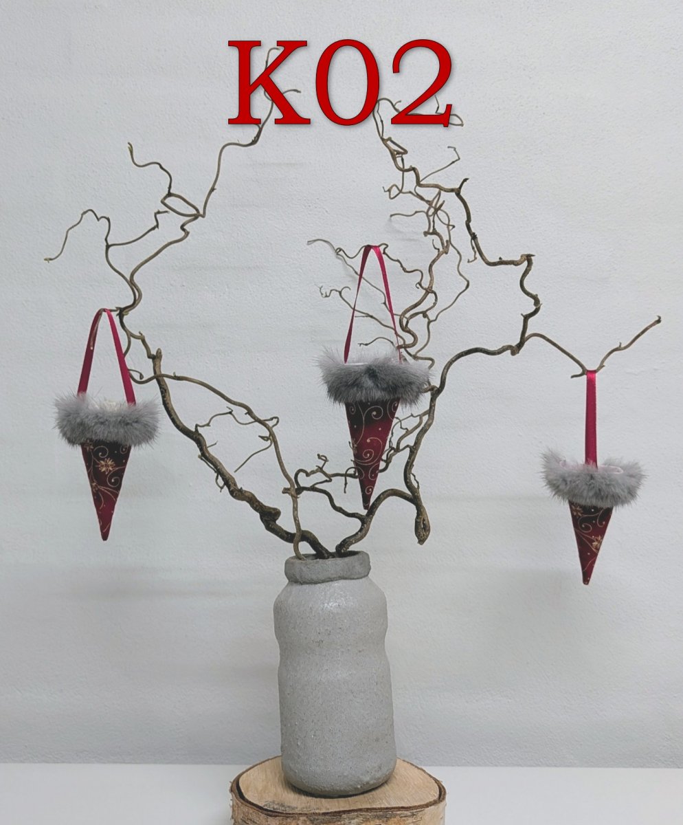 Kræmmerhus i bordeaux rød stof med guldmønster.